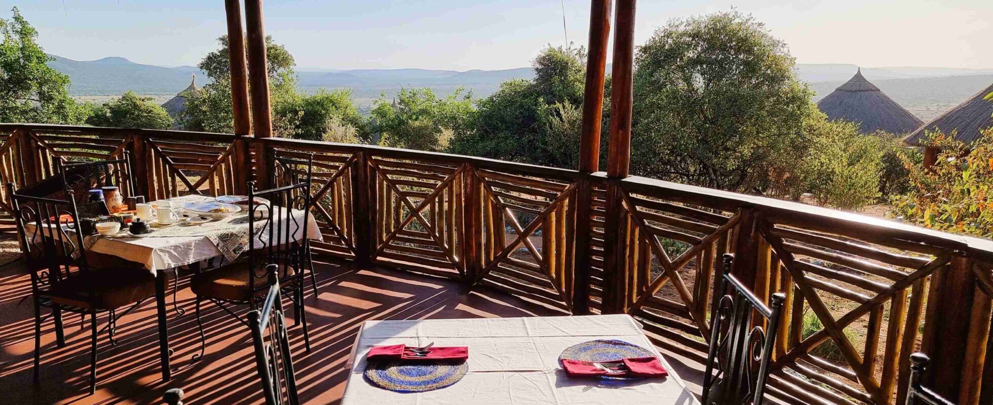 This boma (Maasai village) has 5 basic huts with shared bathrooms for couples who like to keep it simple, 10 bigger ensuite huts for 2 to 3 people, and 2 family manyattas for a maximum of 6 guests. The bigger huts are well-appointed with lovely wooden furniture, a bathroom with a European toilet, ceiling fans, and a private balcony. The lodge furthermore has a restaurant, bar, and swimming pool. And of course, at night the campfire is lit to allow you to share your stories by the fire – like a true Maasai.