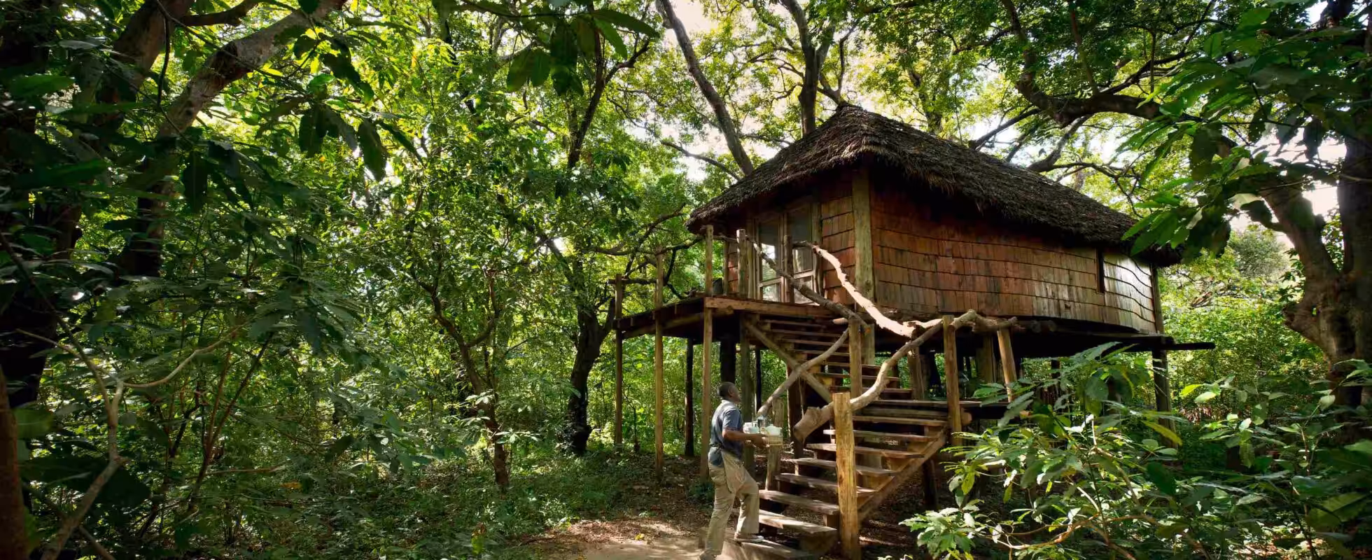 The Lake Manyara Tree Lodge is one of the most special and luxurious accommodations in the Tanzanian safari circuit. It consists of nine deluxe stilted treehouse suites set amongst an enchanting mahogany forest, right in the middle of Lake Manyara National Park. The commodious suites are fitted with cozy sitting rooms and vast beds in the adjourning bedrooms, while enormous outside decks bring you closer to nature’s bosom, as you nestle yourself right among the treetops. Soak in a freestanding tub encircled by forest views or zone out while taking an exhilarating shower outdoors. Overhead fans silently whirl, creating cool comfort. Mosquito nets adorning every bed make for a restful night’s sleep. And when you need a balance between nature and the surrounding world, WIFI is at your fingertips.