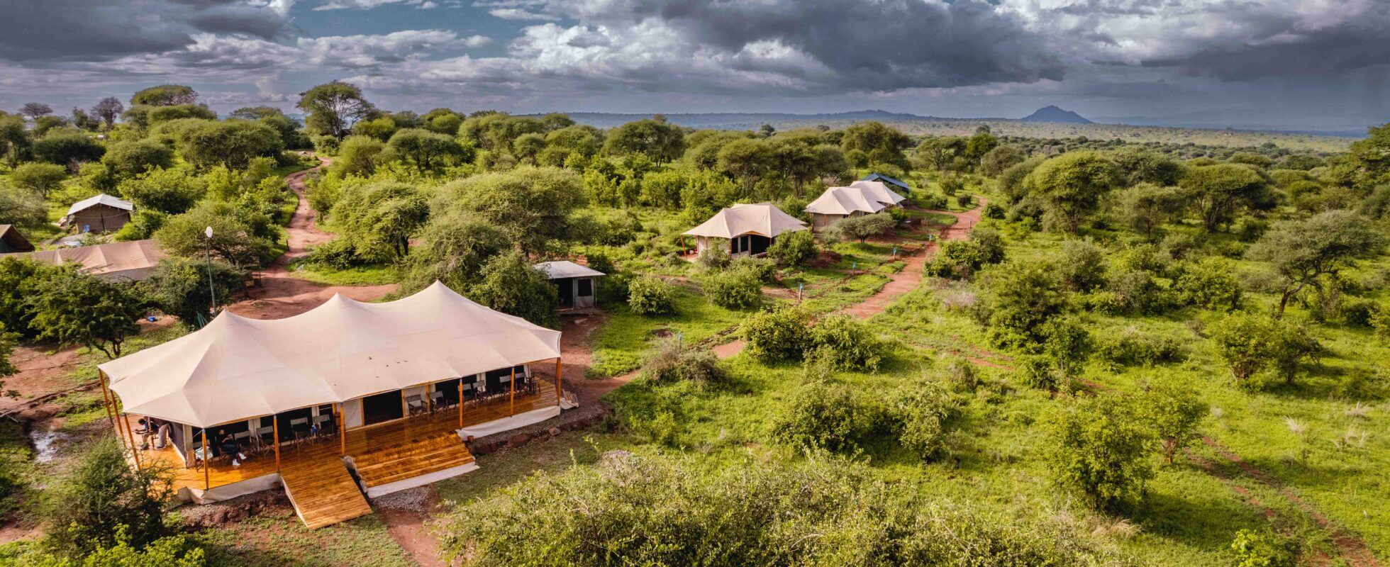 Ang’ata Tarangire Camp lies in the heart of Tarangire National Park overlooking the Tarangire River. It offers 8 beautifully designed and spacious tents (one of which is an interconnected family tent), equipped with fluffy beds, a small sitting area, a cosy outside terrace, and a luxury appointed ensuite bathroom. A public lounge tent allows you to relax before a sumptuous dinner in the restaurant, after which the Bush TV (a campfire) awaits to end your night in style. An ideal place to stay in luxury while still living that true camping experience!