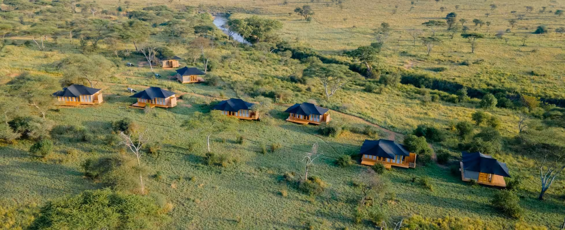 In the central part of Serengeti National Park, near the Orangi River, lies Baobab Central Serengeti Camp an intimate camp that gets visited from time to time by giraffes, zebras and even elephants. It features 17 self-contained, fully furnished wooden safari tents, three of which are ideal for families or groups as they accommodate up to six guests. All tents are equipped with queen-size beds, free Wi-Fi, private bathrooms with flushing toilets and showers, verandas with chairs, and electricity and hot water generated exclusively through solar energy. The main tent houses the reception, a restaurant with delicious breakfasts and dinner, a lounge for reading and relaxation, and a bar. Additionally, just in front of the camp, a fireplace invites you to comfortably enjoy the magic of every starry night.