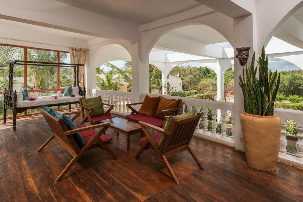 This fairly large resort boasts different types of rooms and private villas, the latter boasting private infinity pools, a roof terrace, and a private spa. The rooms and villas are designed in typical Zanzibar style complimented with locally handmade furniture. The resort emphasizes sustainability, which is why, for example, guests can take bicycles to ride around over coral paths and discover the island’s natural beauty. In the social areas, you find a fantastic pool with a sea view, bars and restaurants. If you come with children, they’ll enjoy spending time at the Rafiki Kids Club. An ideal place to unwind!