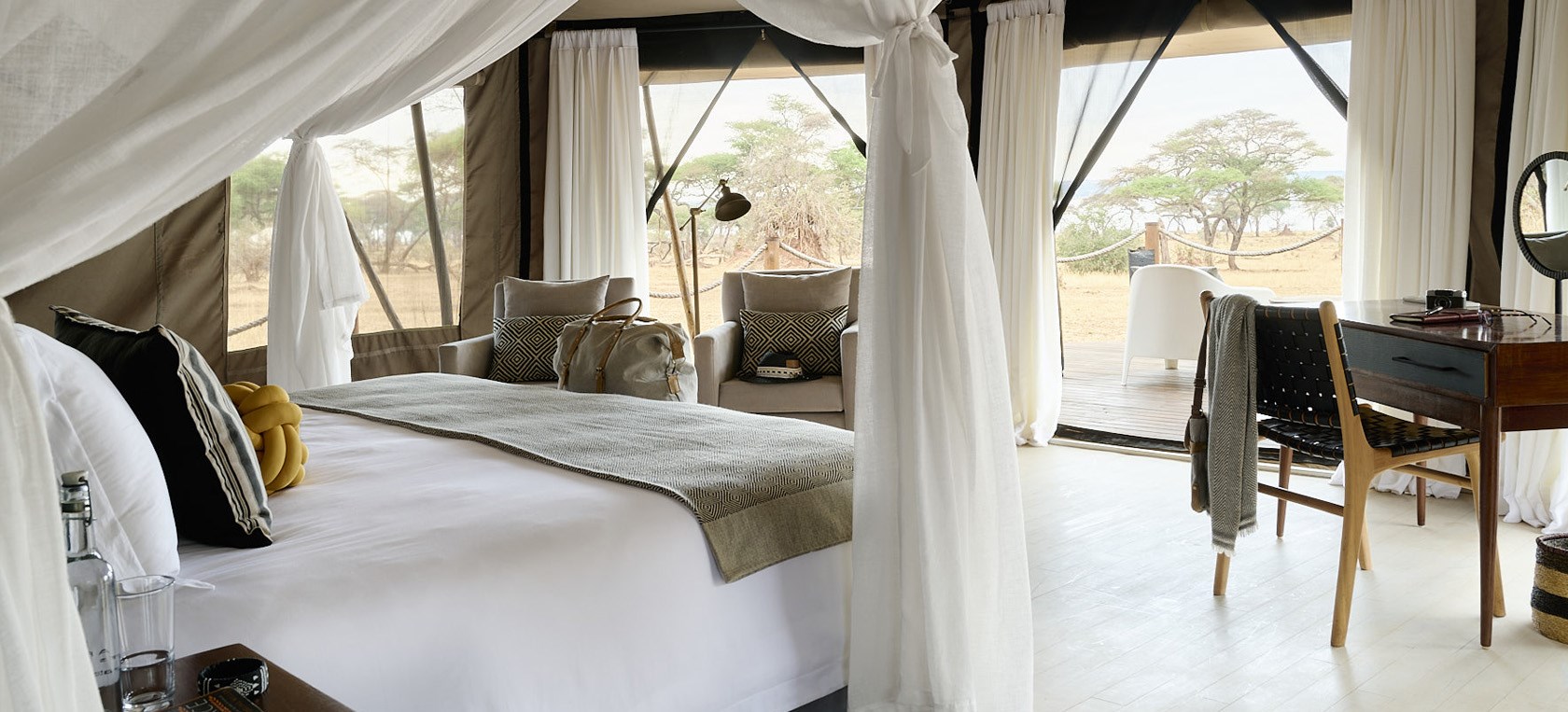 Sanctuary Swala is located in an exclusive pocket of the Tarangire National Park. Set on stilts around towering, ancient baobab trees, the elevated dining area, lounge, and library are all sound-tracked by the sing-song of hundreds of birds. The 12 spacious tents themselves boast kingsize beds swathed in neutral linens mingling a fresh design with a new take on safari living. Indoor and outdoor bush-view showers ensure more magical moments of connecting with the surrounding wildlife, especially with the view of the waterhole close by. The elevated main deck is perfect for afternoon sundowners in soft lounge chairs, followed by scrumptious meals from the restaurant and a campfire in a beautiful circular setting under the outstretched night skies. At Sanctuary Swala you experience your safari nights in style!