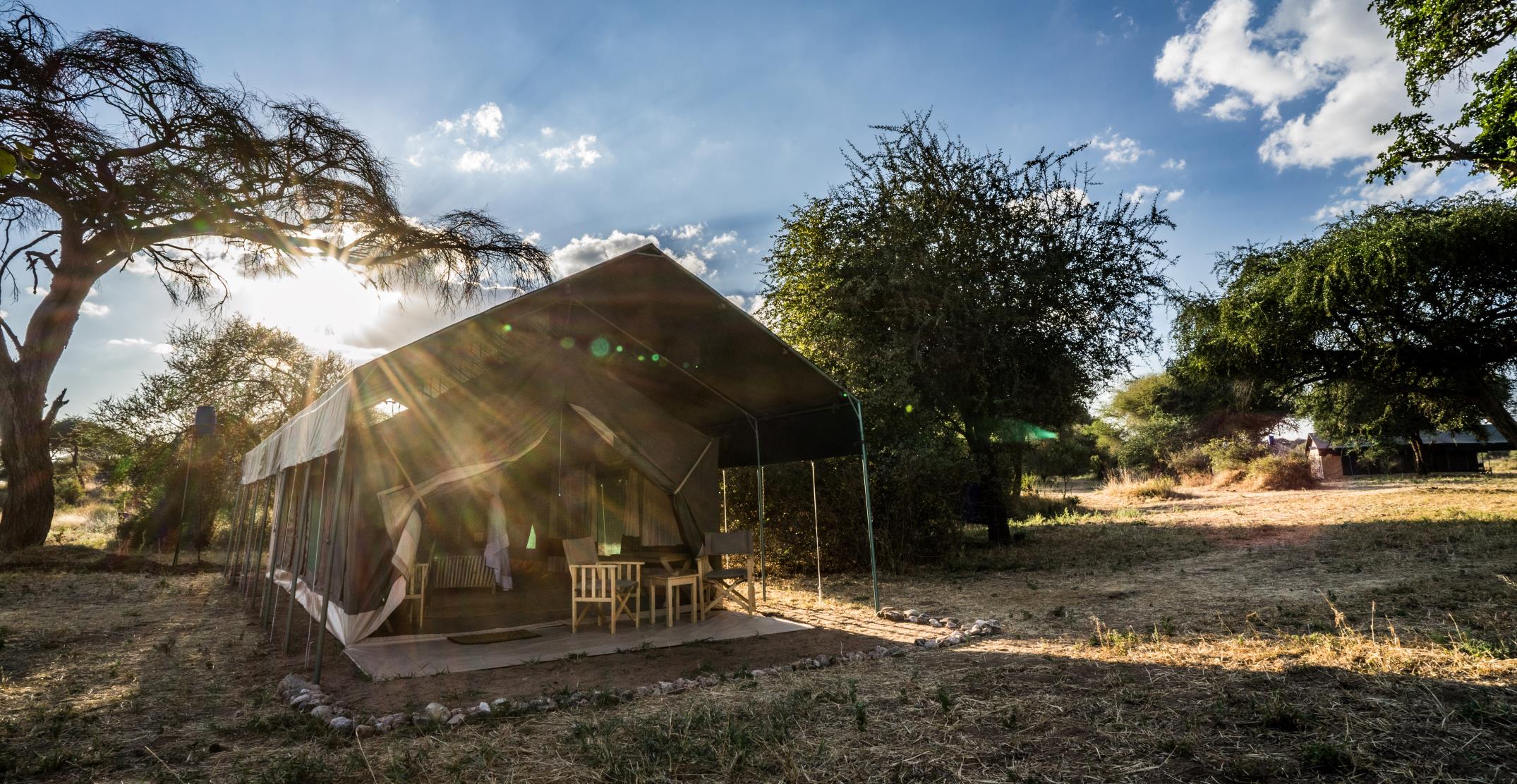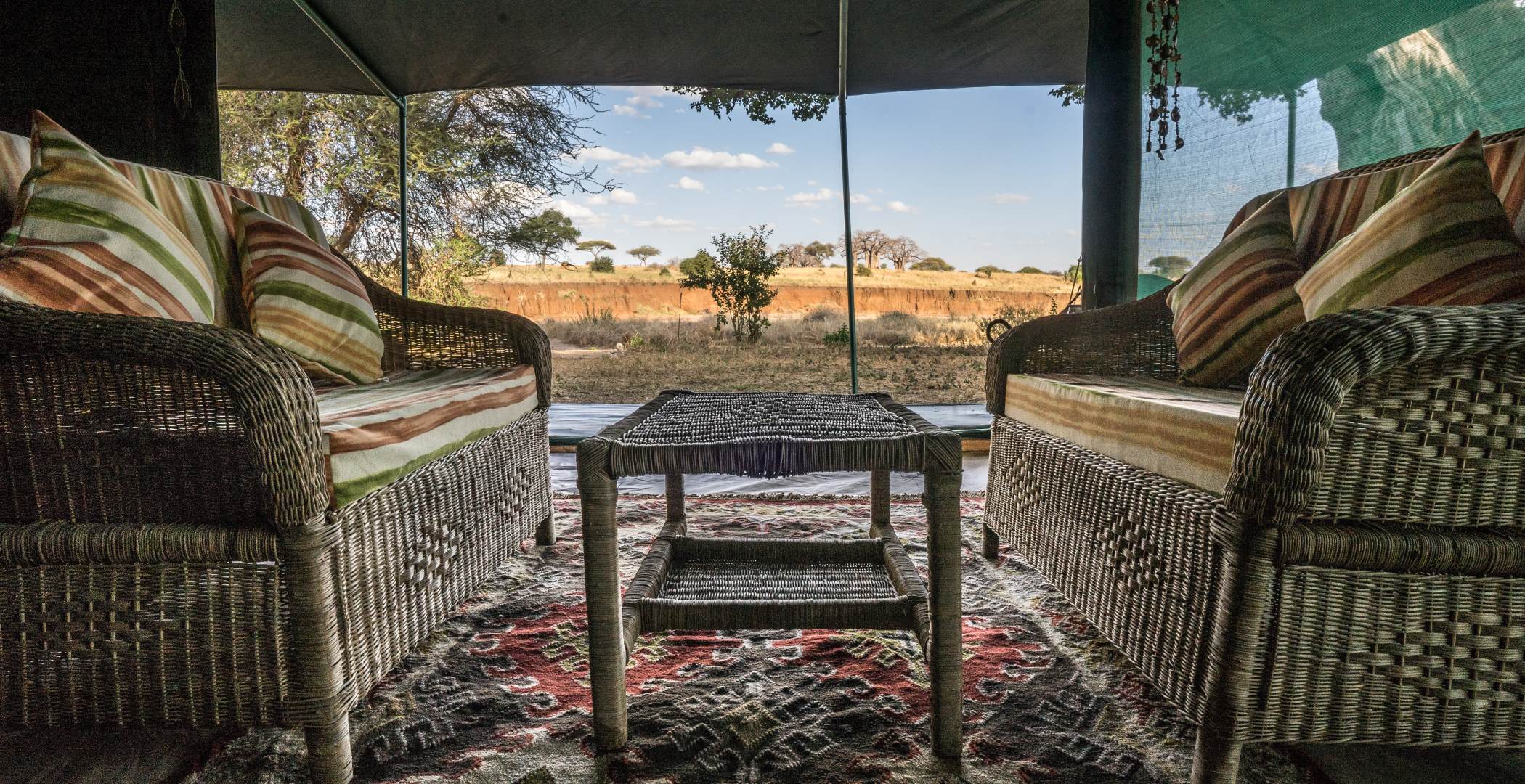 The intimate Tarangire View Camp is located in Tarangire National Park in the shade of large acacia and sausage trees on the banks of a seasonal riverbed. The camp boasts 8 tents accommodating 1 to 4 people each. It offers a lovely safari bush experience with a breathtaking location and more than just a touch of comfort and privacy. The main tent provides sofas to relax on, a small bar, and tables for lovely dinners. From your private terrace, you can spot the occasional local wildlife passing by such as elephants, impalas, lions, jackals and leopards, and the many various bird species provide the perfect morning wake-up calls.