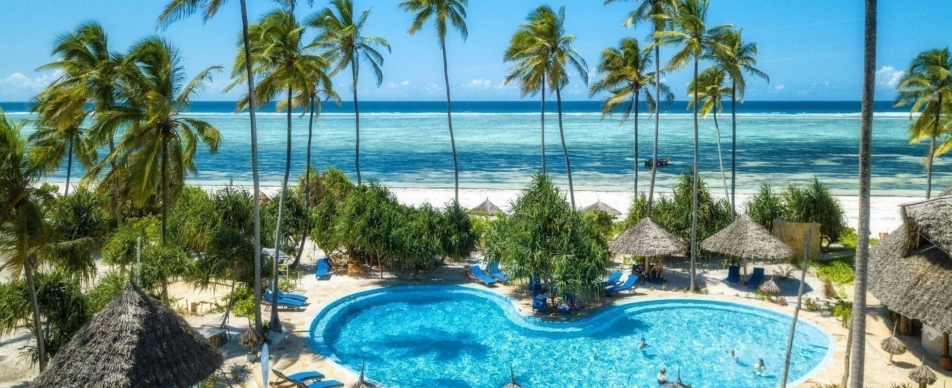 Known for its coral-white sands and the turquoise waters of Matemwe Beach, Zanzibar Queen Hotel offers seaside relaxation with a touch of comfort. The hotel features spacious, air-conditioned rooms with bathrooms equipped with showers, wardrobes, desks, and safes. Outside, there is a swimming pool with loungers and a spa for yoga or massages. Dining is a highlight too, with freshly caught seafood, colourful Swahili dishes, and even sizzling barbecue nights on offer. And for something lighter, the restaurant serves fruit juices squeezed straight from locally sourced produce!