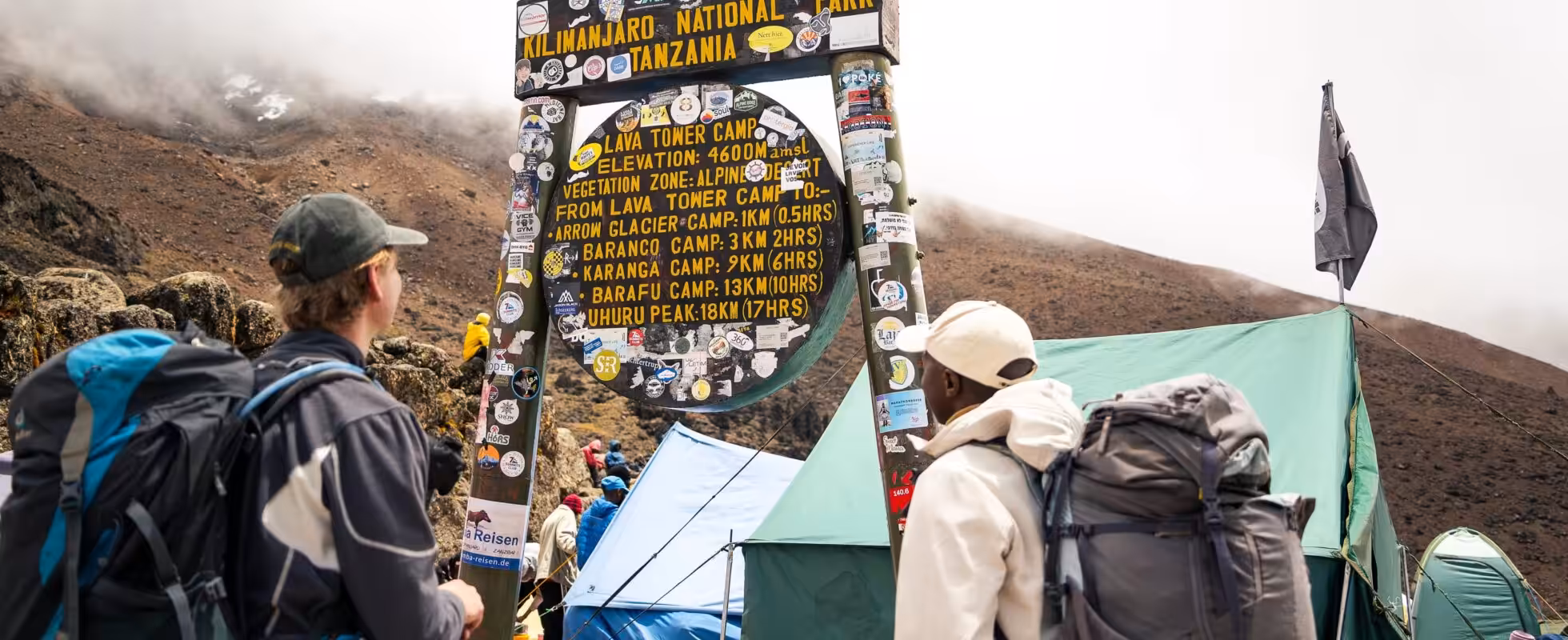From Shira Camp to the beautiful Lava Tower, you go through many ascents and descents with amazing views along the way. You have lunch at Lava Tower for one to two hours for your body to acclimatize as you might feel uncomfortable with the increase in altitude. After lunch, you descend to Barranco Camp. Watch out for strange-looking flowering plants that grow up to five meters high! Barranco Camp is located at the foot of the imposing Barranco Wall, which is impressive in both its sheer size and steepness.