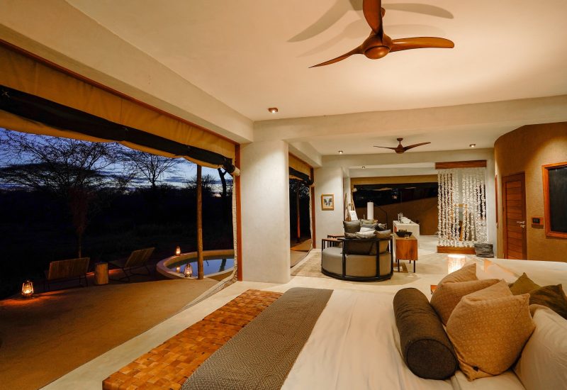 Directly on the Great Ruaha River in Ruaha National Park, Asanja Ruaha lies between magnificent old baobabs. With eight luxury designer guest suites, this is an intimate camp that pampers your soul. Each room is 140 square meters in size, boasting stone walls and floors but canvas walls to the front and side to allow both privacy and amazing views over the impressive Ruaha plains. Luxuriously appointed, the bedroom, sitting area and bathroom ooze a sense of well-being and pampering, topped off by a lone standing bathtub inside and a plunge pool just outside on the terrace. An extraordinary place!