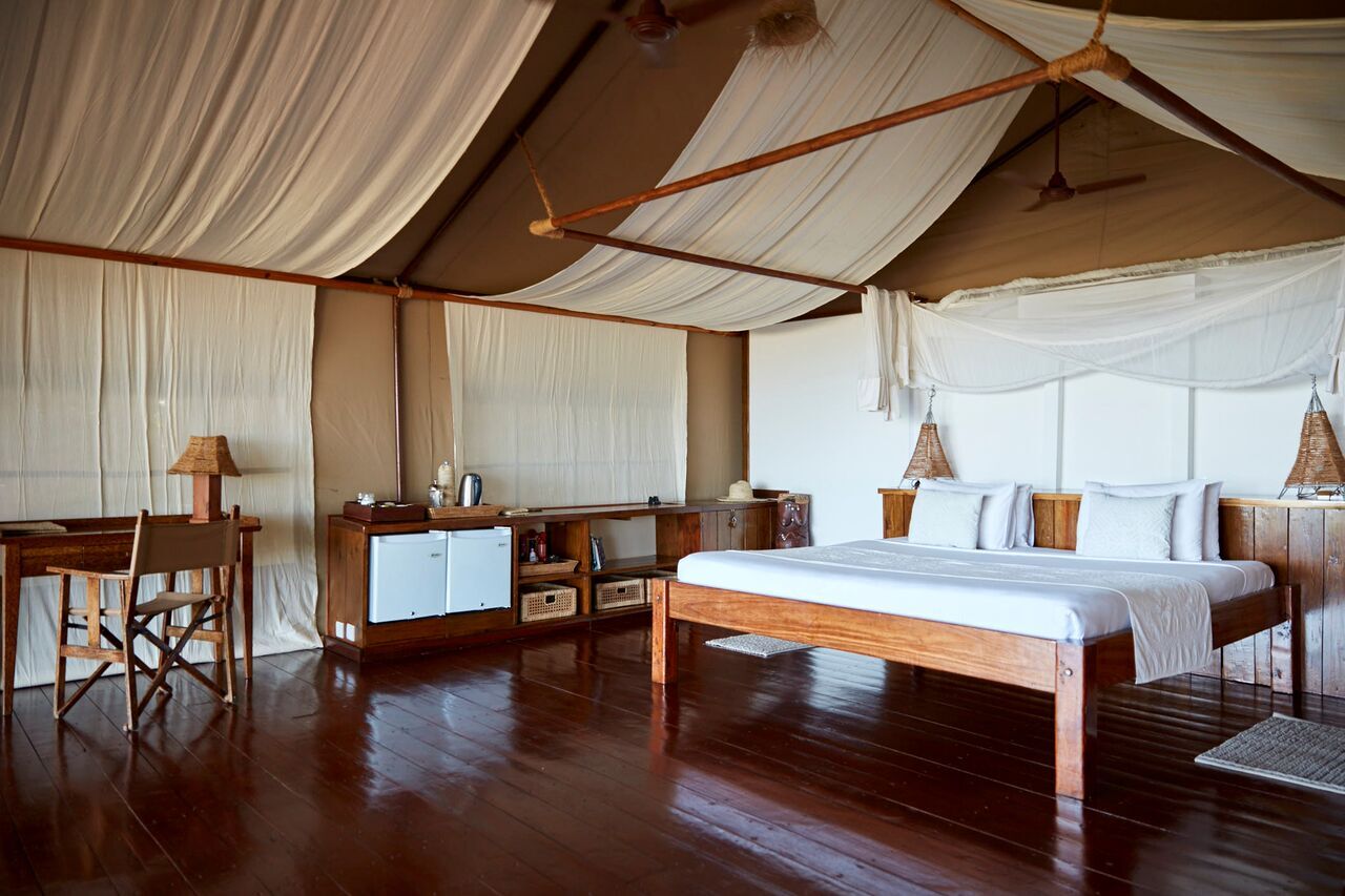 Fundu Lagoon is a boutique hotel on Pemba Island and a little paradise in itself. Located on the beach against a hill, it has beautiful tented rooms with thatched roofs on the beach, as well as a bit higher on the hill. The suites have beautiful little plunge pools on their terrace, besides there being a main pool near the restaurant. Fundu Lagoon is a great place for those who want to go diving or snorkelling, but also for those who just need a place to let go of all of their worldly worries…!